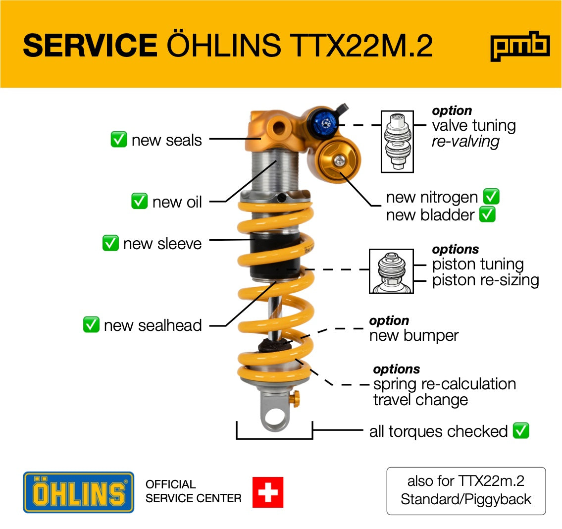 - Service by the official service center for Öhlins MTB: PMB Suspension